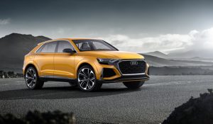 Com o Audi Q8, a marca abrirá um novo segmento para os seus modelos topo de linha. O SUV premium em estilo coupé combina grande espaço interno com design arrojado e oferece as últimas tecnologias em assistência e infotainment. A produção da Audi na Bratislava, onde o novo modelo entrará em linha em 2018, também é responsável pela fabricação do Audi Q7 desde 2005. Além disso, a segunda geração do SUV também é feita lá, assim como a versão S e o Q7 e-tron plug-in híbrido.