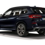 As linhas do BMW X5 M50i enfatizam a natureza exclusiva e esportiva do modelo, com generosas entradas de ar no para-choque dianteiro para atender a demanda de refrigeração do propulsor V8. Também são destaques os designs exclusivos das soleiras laterais, para-choque traseiro e do rack de teto e molduras da janela em High-Gloss Shadow Line.