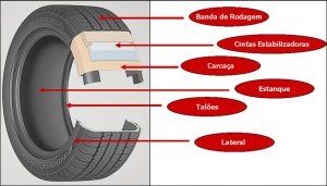 Talão: É formado por fios de aço banhados por cobre e revestidos individualmente por borracha, para evitar a oxidação e facilitar a adesão. O talão fixa o pneu na roda, de maneira a evitar o vazamento de ar e garantir que não ocorrerá destalonamento durante o uso.