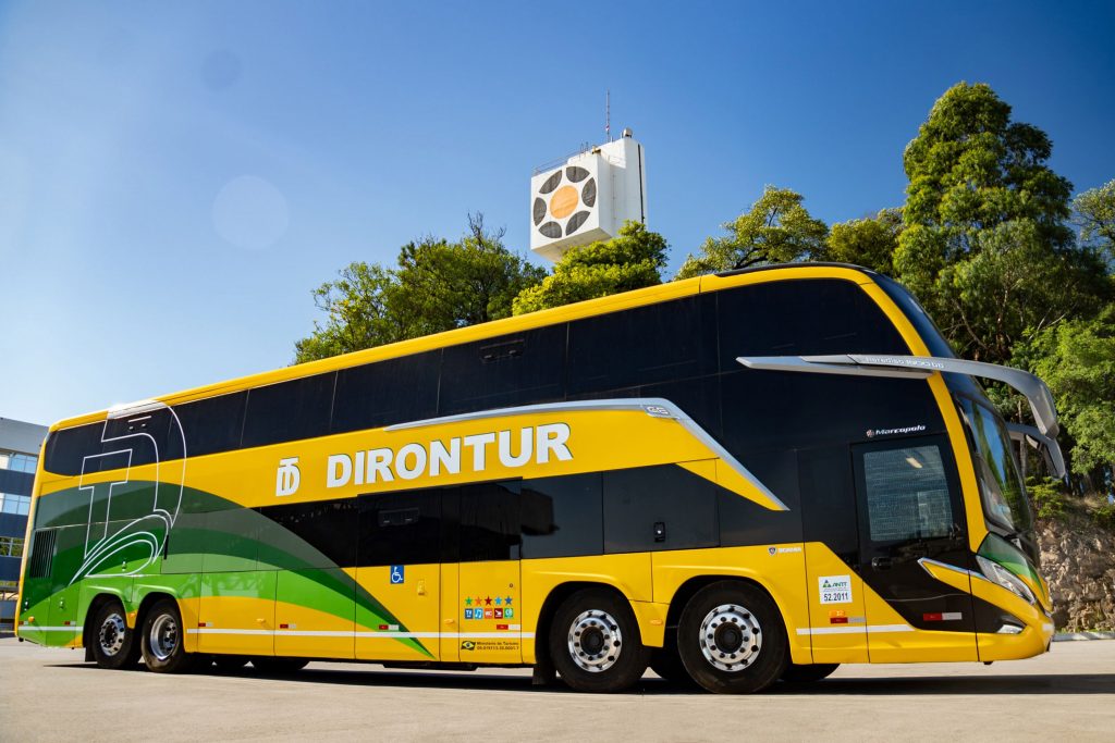 A Dirontur Transporte e Turismo, com sede em Formosa/GO, acaba de receber o seu primeiro ônibus Marcopolo Paradiso G8 1800 Double Decker. O veículo, entregue pela Topline, representante de vendas da Marcopolo que atende o estado, será utilizado em viagens de turismo e fretamento na região.