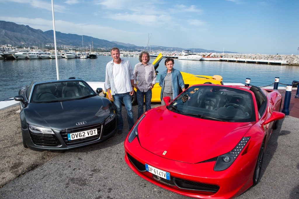 Episode 3 Picture Shows: Jeremy Clarkson, James May and Richard Hammond in Puerto Banus with the Audi R8 Spyder, Ferrari 458 Spider and McLaren MP4-12C Spider