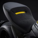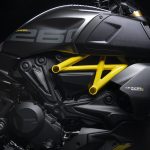 A pintura da Diavel 1260 S “Black and Steel” é caracterizada pela escolha de gráficos assimétricos e refinados que combinam cinza brilhante e preto fosco como cores principais. O diferencial fica por conta da cor amarela, que confere toques esportivos ao quadro, à parte inferior da rabeta e alguns acabamentos da moto.