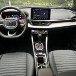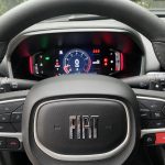 O volante apresenta boa empunhadura e é forrado em couro. A base é achatada e conta com um acabamento em black piano. Do lado esquerdo estão os botões para controle do cluster digital, além dos comandos de voz e atendimento de chamadas. Do lado direito estão os comandos do piloto automático (apenas convencional, infelizmente) e limitador de velocidade. Há também o botão vermelho para acionamento do modo “Sport”, que deixa o comportamento do Fastback ainda mais apimentado. Atrás do volante estão as aletas para troca de marchas e dois úteis e intuitivos botões para uso da multimidia.