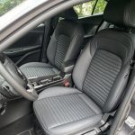 Os bancos dianteiros são firmes e acomodam bem o corpo naqueles momentos em que o motorista resolve testar o limite de aderência dos pneus nas curvas. A forração dos bancos, por sinal, é de muito bom gosto, apresentando um couro sintético com uma série de gomos (lembram um vidro canelado) e costuras em linha branca. Entre os bancos há um bom apoio de braço, item essencial em qualquer carro automático. Nas costas do banco do motorista não há porta-revistas, mas no banco do carona essa bolsa de utilidade duvidosa se faz presente. Há saída de ar exclusiva para quem vai atrás e uma porta USB tradicional (tipo A).