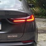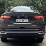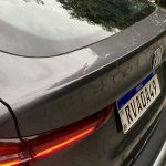 Na traseira estão as belas lanternas em led. Pisca, freio, ré, tudo em led. Chama bastante a atenção o caimento inclinado da tampa do porta-malas, como manda o estilo “fastback”. O vidro traseiro é bastante inclinado e conta com desembaçador traseiro. O limpador, estranhamente, não se faz presente. Já a câmera de ré, com ótima nitidez, fica bem visível na parte superior da placa. No para-choque traseiro é possível notar os sensores de estacionamento, bem como acabamentos em plástico prateado que, segundo alguns, fazem alusão a ponteiras de escapamento. Se é isso mesmo, não gostei da ideia. Prefiro encara-los apenas como acabamentos do para-choque em cor diferente.
