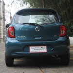 Posicionada imediatamente abaixo do modelo topo de linha, o SL, a versão SV avaliada pelo site, já vem bem equipada e com detalhes externos no padrão da versão mais completa. Visto de frente, o modelo conta com faróis de neblina, para-choque dianteiro adornado por um friso cromado e um desenho bem agressivo, com vincos bem aparentes no capô. De lado, o compacto japonês revela as novas rodas de 15 polegadas de alumínio, com desenho bem agradável aos olhos e linhas bem discretas e lisas. Na parte traseira, ele conta com um aerofólio com break light integrado e lanternas pequenas e saltadas nas extremidades. Há quem goste bastante do design e outros nem tanto, mas no geral o New March agradou a maioria.