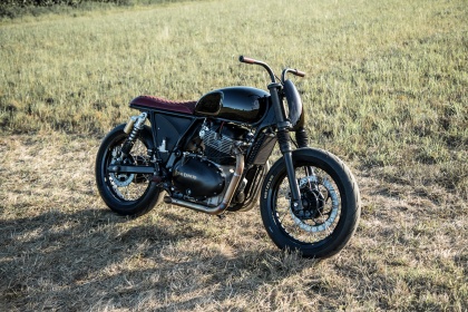 A Old Empire Motorcycles decidiu despir a Interceptor INT 650 até o seu núcleo. Livraram-se de parte da carenagem, que acabava escondendo o essencial do modelo. Um trabalho de pintura em vermelho metálico profundo somado ao couro de cor Oxblood e assento Alcantara trazem um toque elegante à máquina, com um equilíbrio entre ser luxuosa e irreverente. Sua posição mais baixa e o motor escurecido indicam que há uma agressividade escondida sob o exterior mais refinado. As barras integradas escondem toda a fiação e os cabos com controles internalizados e remetem ao caráter de customização old school, que remove qualquer peça ou parte que não seja estritamente necessária. Como uma homenagem à tecnologia moderna, o modelo customizado não tem mais chaves convencionais. Em vez disso, traz uma ignição sem chave vinculada às luvas de pilotagem – mais um exemplo de estilo atemporal que pode combinar perfeitamente com o mundo moderno.