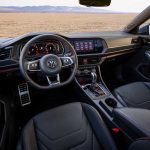 O interior do Jetta GLI mescla dois elementos essenciais: esportividade e a luxo. O interior escuro destaca os detalhes esportivos, como: forração do teto, colunas, laterais das portas, painel e bancos.